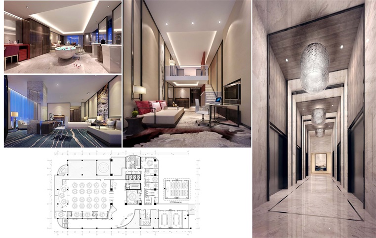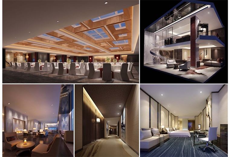 設計師將貴州地方特色提煉出設計元素進行演繹。如苗家銀頭飾演變而成的藝術燈。行政酒廊背景墻取材“瀑布飛流直下”意境設計的裝飾墻,重疊錯落,在燈光的映射下層次豐富,給視覺帶來永不落伍的美感酒店是一棟廣場式高層建築,六層為接待大堂及餐飲包間多功能宴會廳,十至二十層為標準客房160間,二十壹層至二十三層為複式行政套房48間,建築四面全落地玻璃幕墻設計使得每壹個客房的休息區都有最好的觀景點。當夜幕降臨,置身其中,可以180度欣賞城市景觀,戶外景觀與室內的寧靜怡人,憩遊其中,頓感釋然。