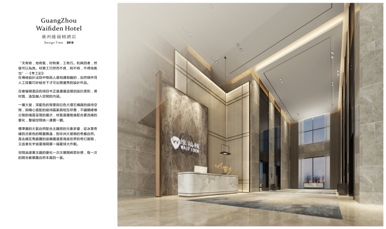 在傳統設計法則中物與人是相通相融的,自然條件同人工技藝巧妙結合下才可出現優秀的設計作品。在維福頓酒店的項目中正是遵循這樣的設計原則,將材質、造型融入空間的內涵。一層大堂,深藍色的背景與白色大理石構建的接待空間,與精心搭配的接待區家具相互呼應,不鏽鋼線條分割的塊面呈現的層次,材質逐層推進配合著流線的變化,整個空間統一連貫一體。標準層的大氣自然配合主題房的元素多變,從冰雪奇緣的淡紫色的輕靈飄逸,到非洲大冒險的奇趣自然。