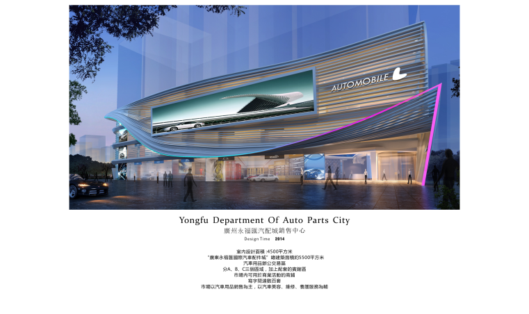汽車用品辦公交易區,分A、B、C三个區域,加上配套的賓館區,市場內可用於商業活動的商鋪,寫字間達數百套,市場以汽車用品銷售為主,以汽車美容、維修、養護服務為輔