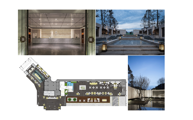 5A景区的“腾龙漫道”,达到真正的“依山伴水”。自大门而入,盛景直入眼帘,整个建筑犹如一件匠心入魄的艺术品,让生活和思想生根于土地与山水。步入大门,随着阶梯往下,两边便是精心打造的叠水景观。以水雾系统结合山石、形成水镜明堂给人以宁静致远的体验,打造“镜面水景,山水意境”的中堂内庭。